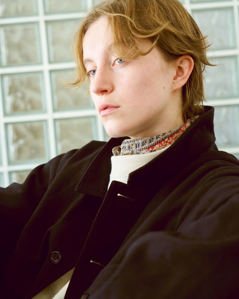 オーバーサイズながら計算されたサイズ感や天幅広いネック、長い袖を捲ったバランスなど、どこか色気を感じさせます。