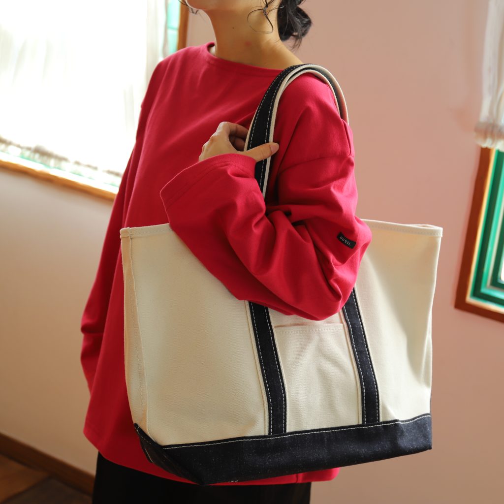 生成りベースは持ち手とボトムにOUTILオリジナルのデニム素材を採用。