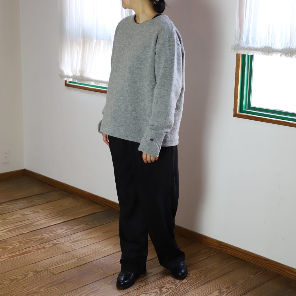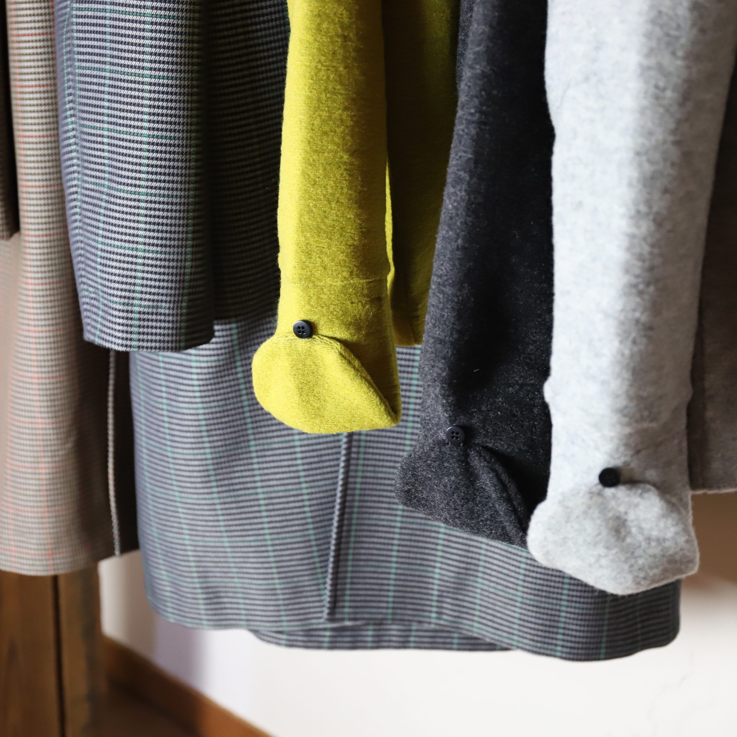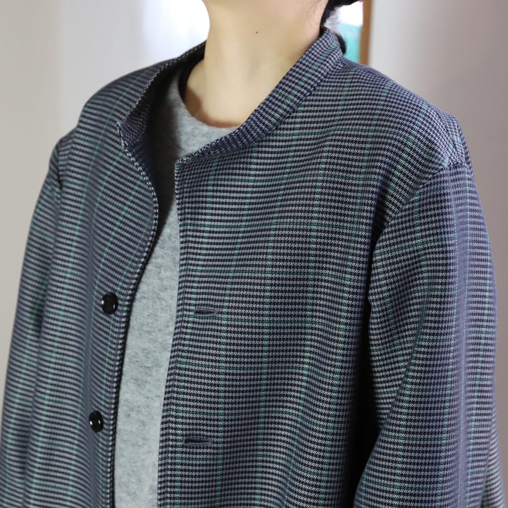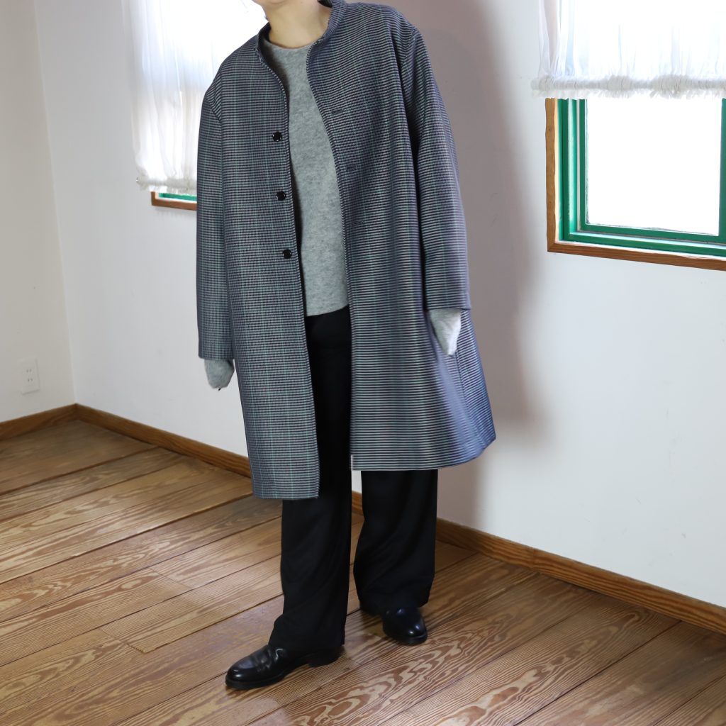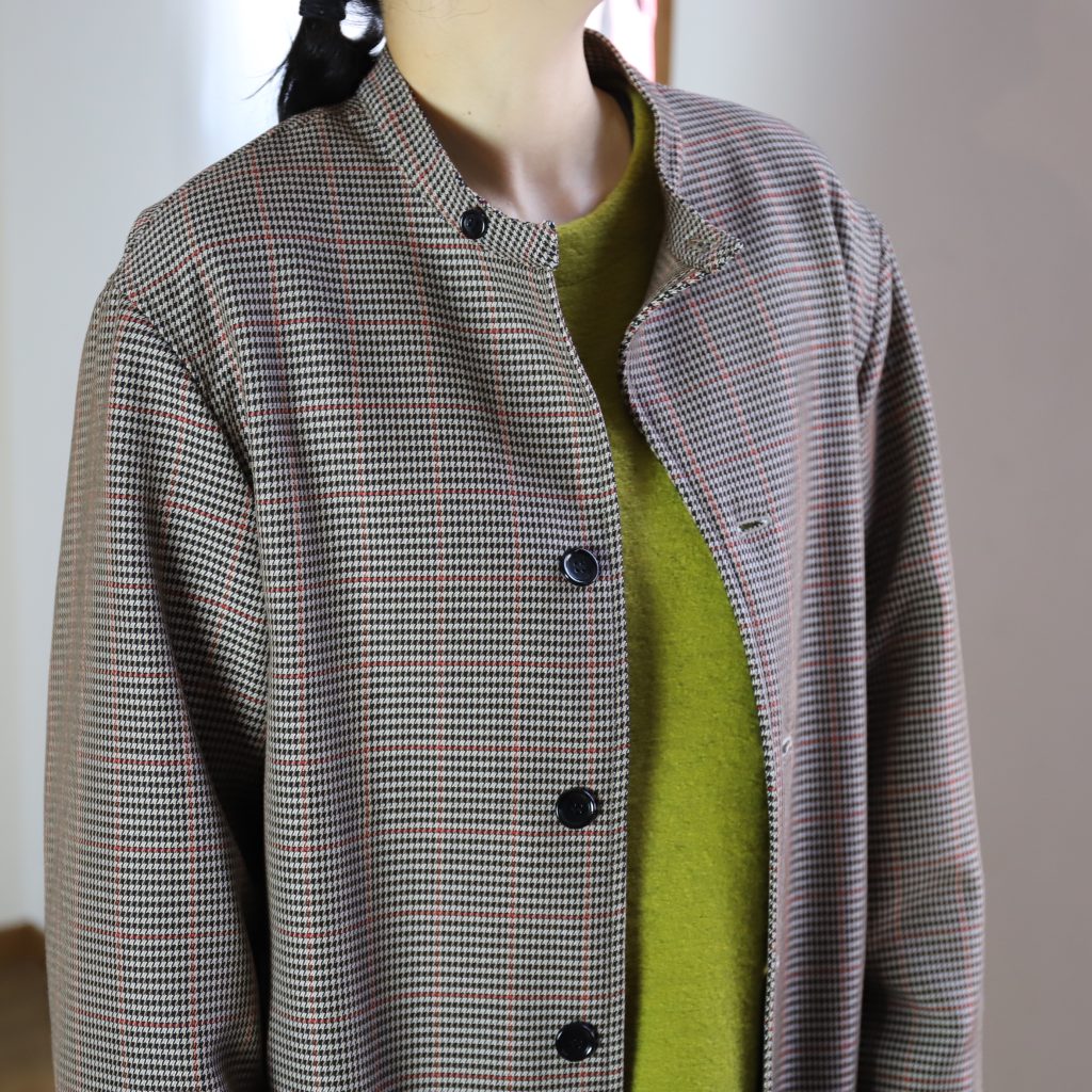 ノーカラーのシンプルなデザインですが、アシンメトリーの前合わせ、肩の落ち感、たっぷりと取った見頃のドレープなど、着た時のバランスが素晴らしい。