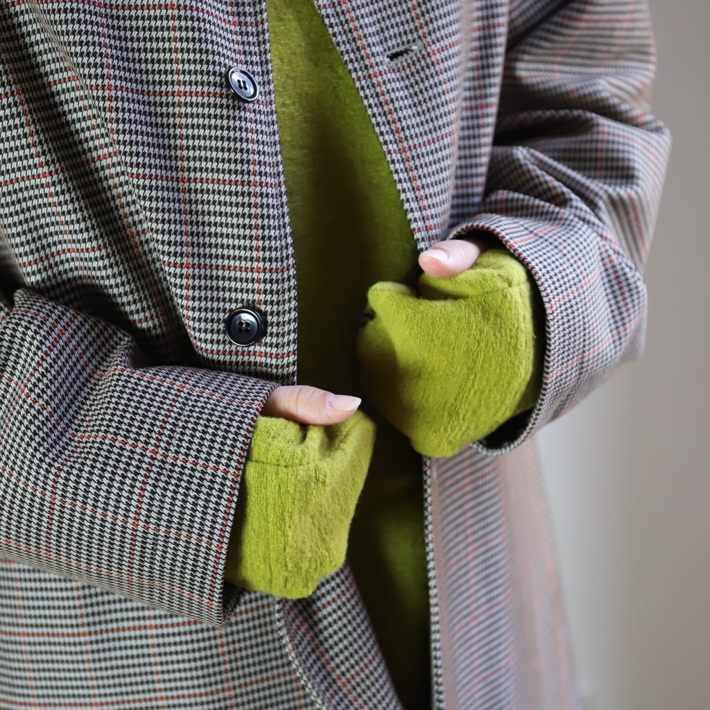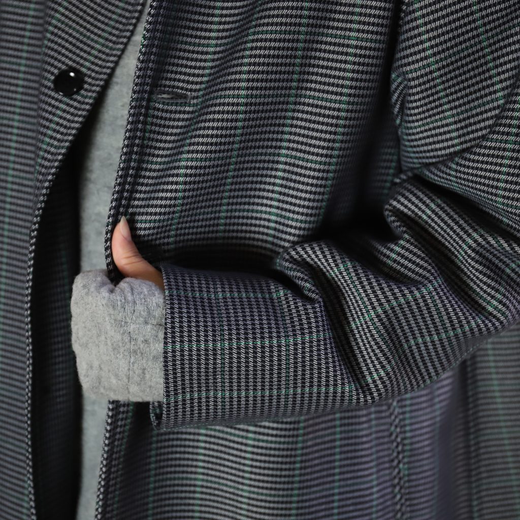 柄はクラシックなチェックですが、よく見るツイードのような粗野な生地ではなく、光沢あるモダンな印象。