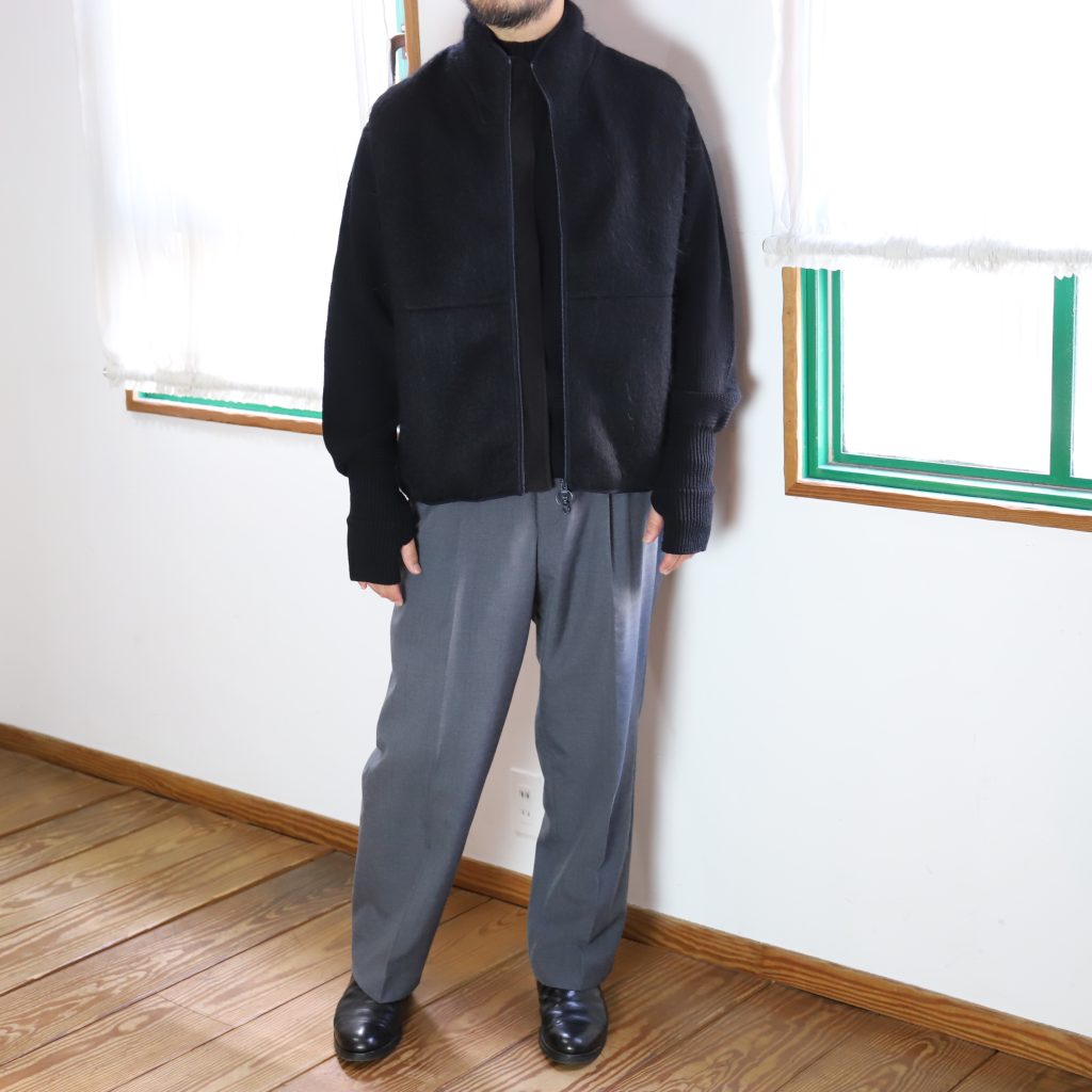 ウールモヘアの素材感がトラッドなスタイルにも相性抜群です。