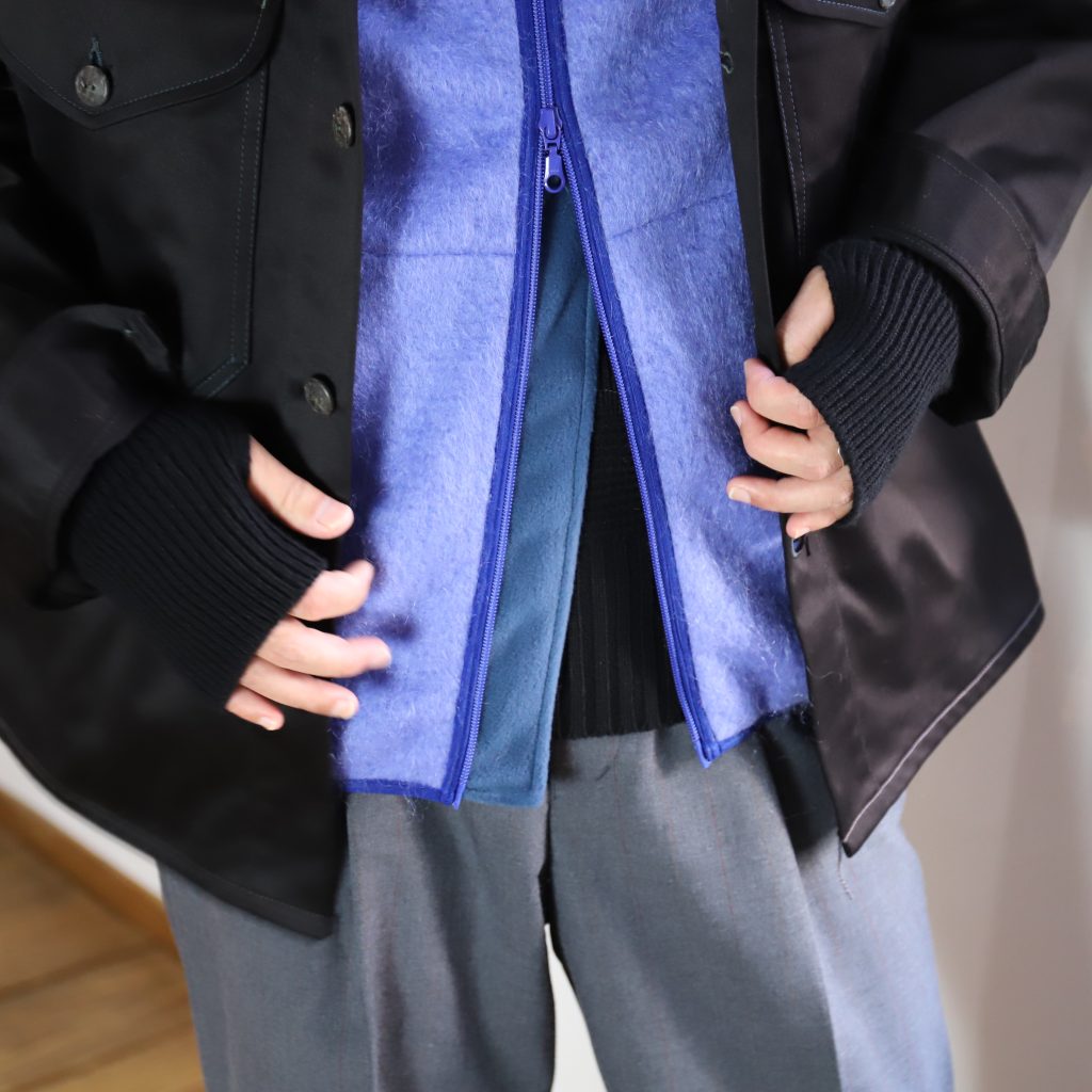 アームホール広めですので、ジャケットの上からオーバーベストな着方も可能です。