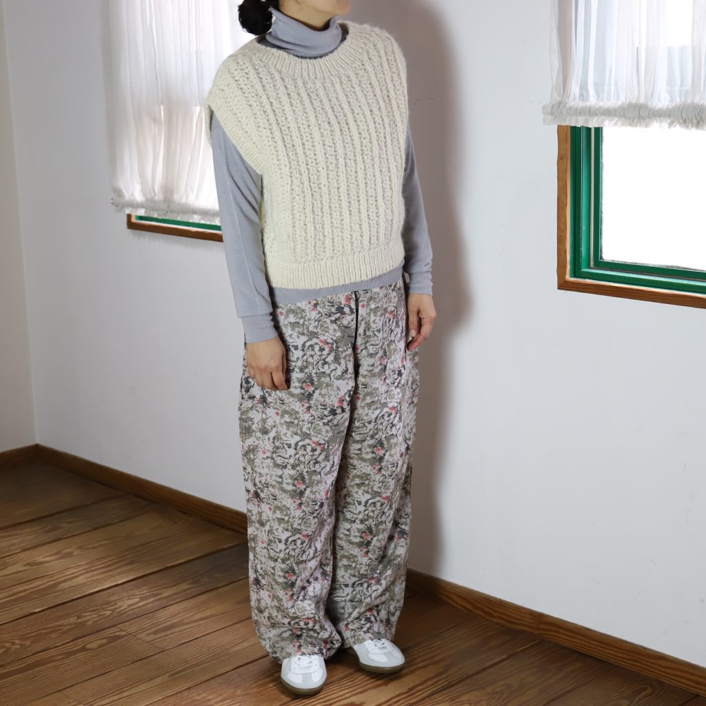 まだご紹介できていませんがOUTILのジャガード織のワイドパンツを合わせました。これ超可愛いです。