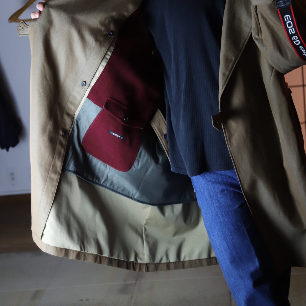 各所ディテール盛りだくさん。だけどトレンチほどデコラティブではないところがポイント。