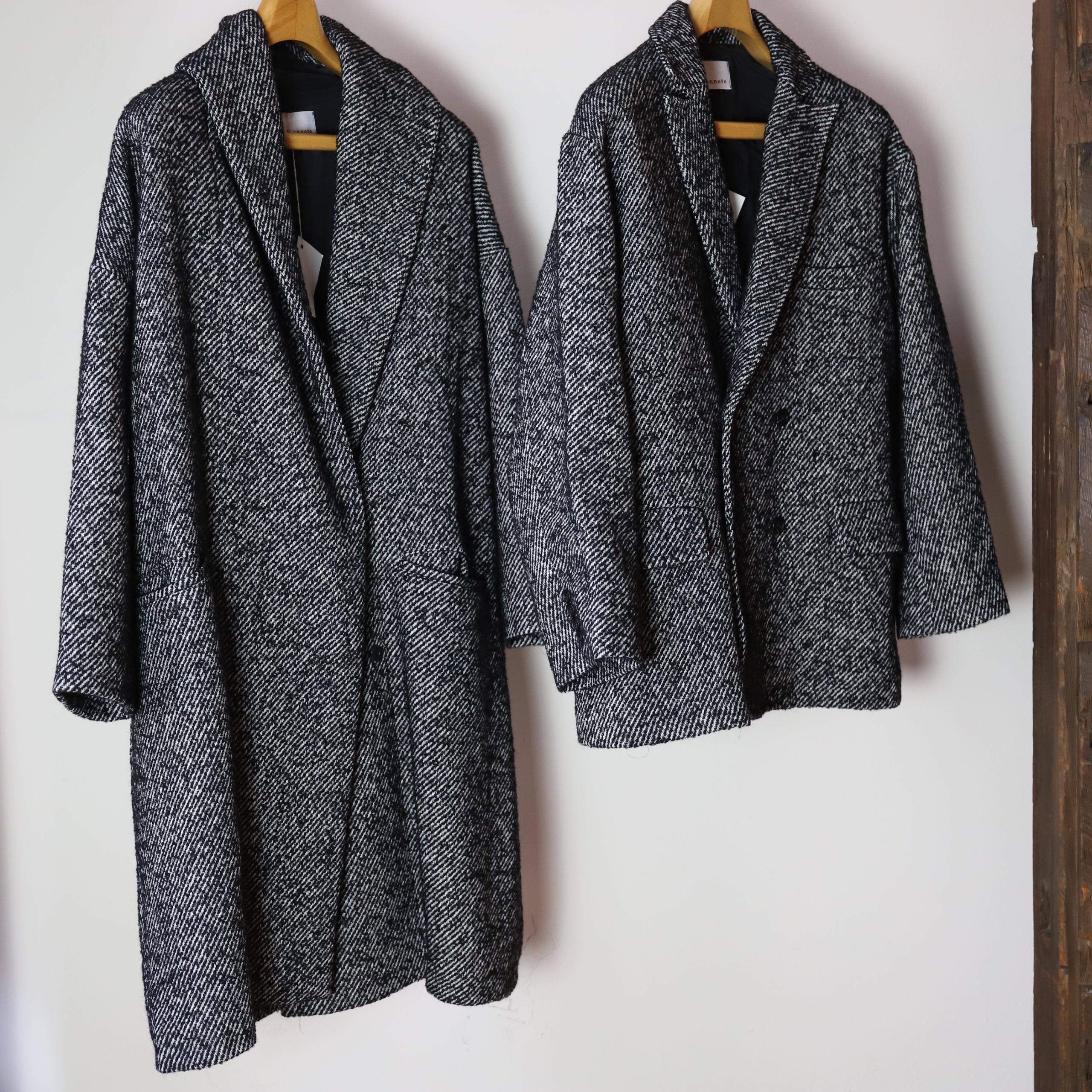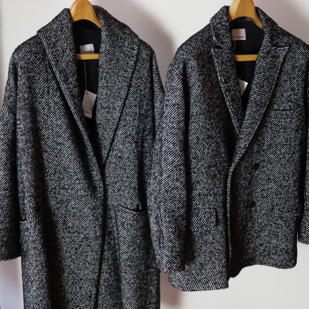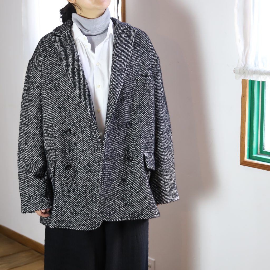 新型ダブルのオーバージャケットも素晴らしい。メンズライクなデザインですが、丸みのあるオーバーサイズ感がやはり女性らしいシルエット。
