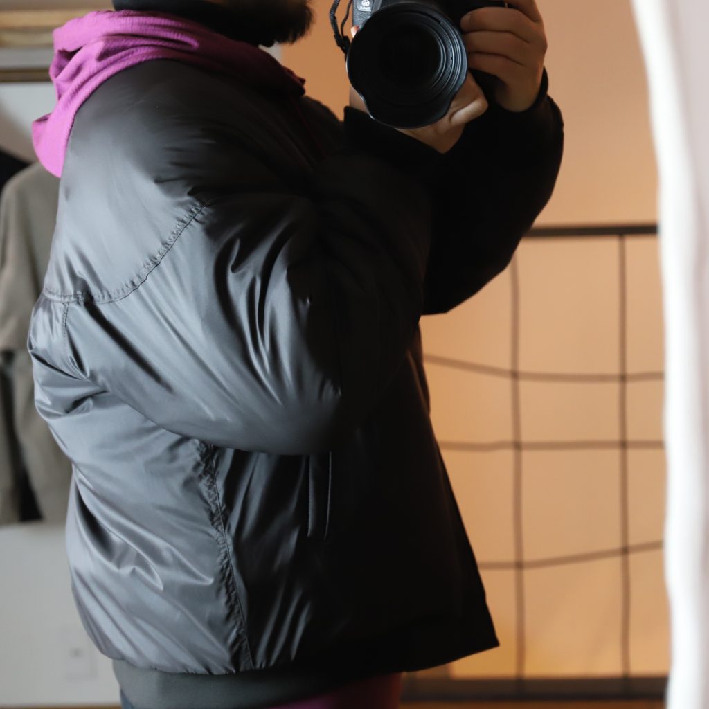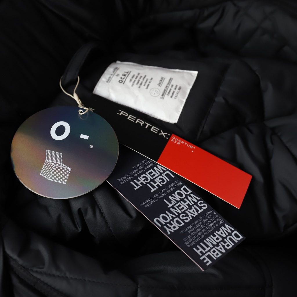 表地にはPERTEX®︎ QUANTUM AIRナイロンシェルを、中綿にClimashield®︎ APEX6.0ozのキルティング地を使用。