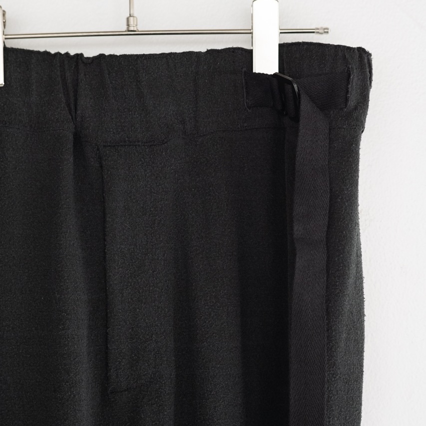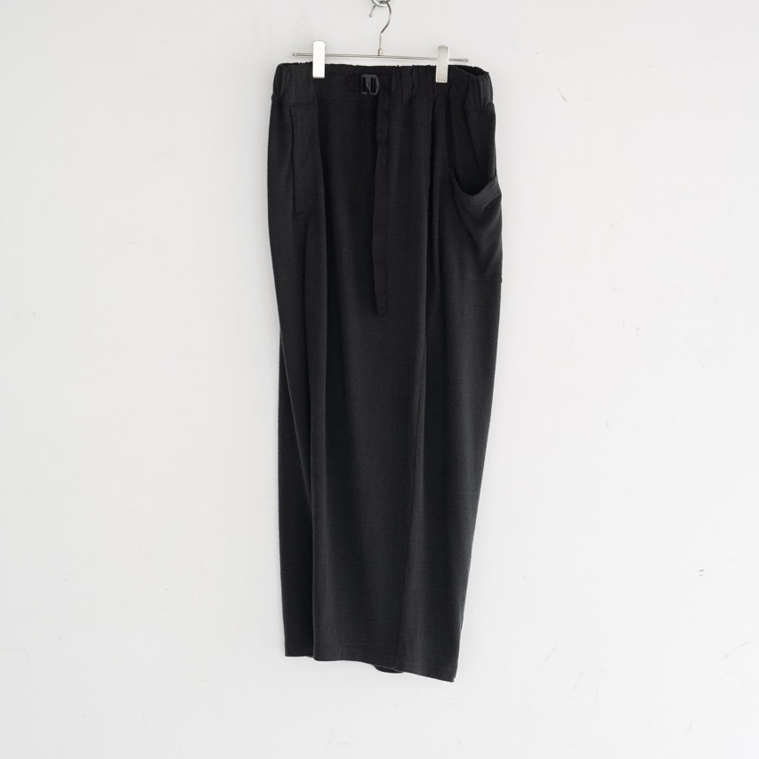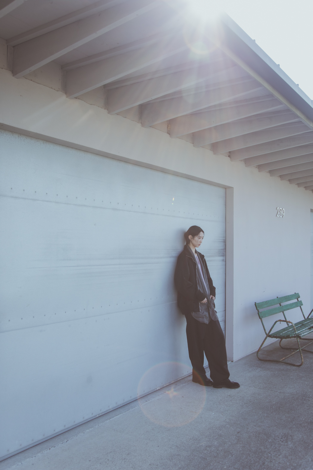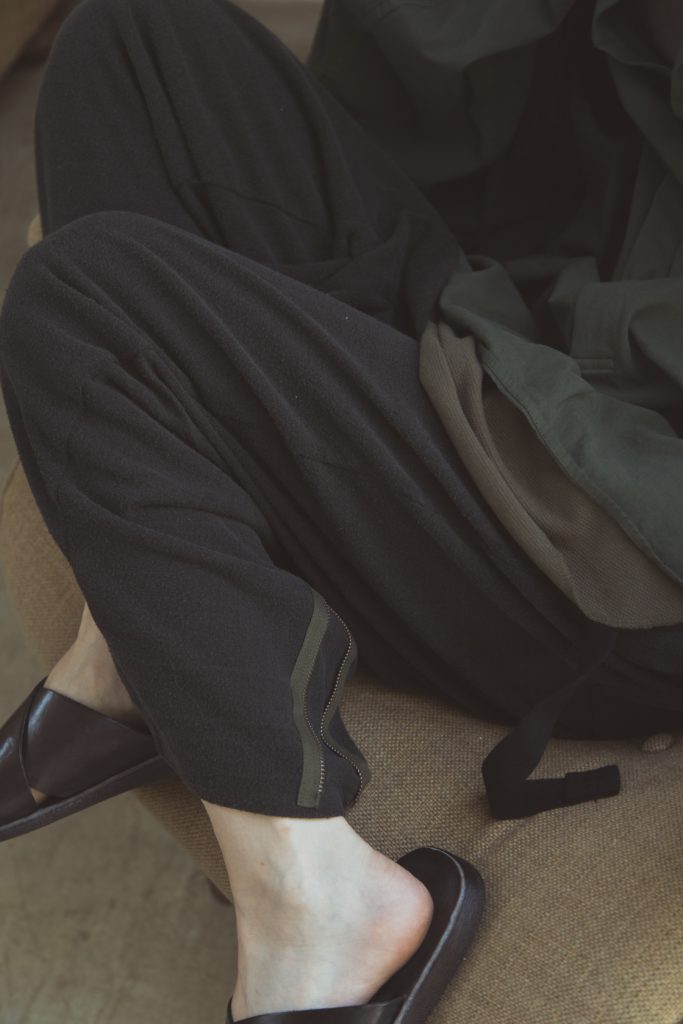 ジャージのような気楽さに、裾の叩きつけファスナーで緊張感のあるデザインに。