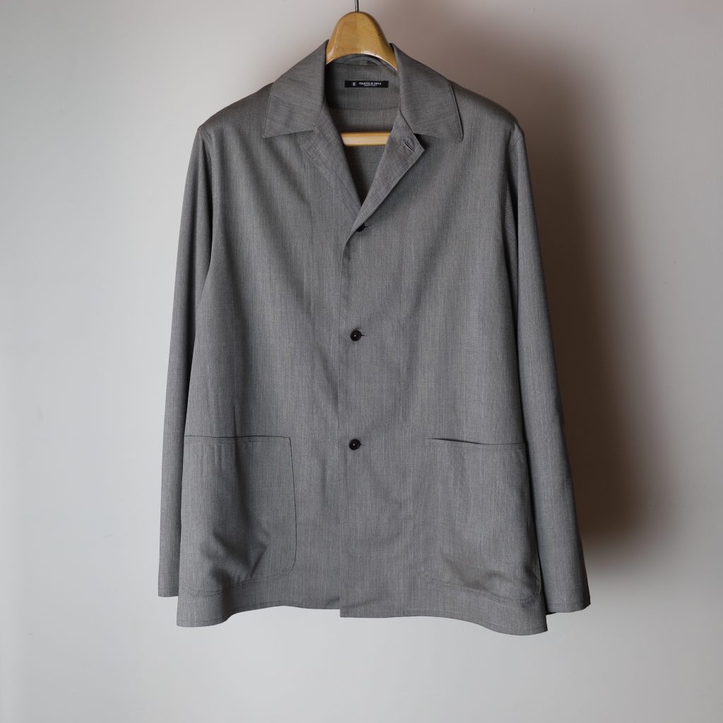 新型シャツジャケットは、ジェフリーと共生地ウールレーヨンのシャークスキン。この上質な生地だからこその軽い羽織り。とろける系の肌触りで半袖の上からサラッと。ジェフリーとのセットアップもいいに決まっている。