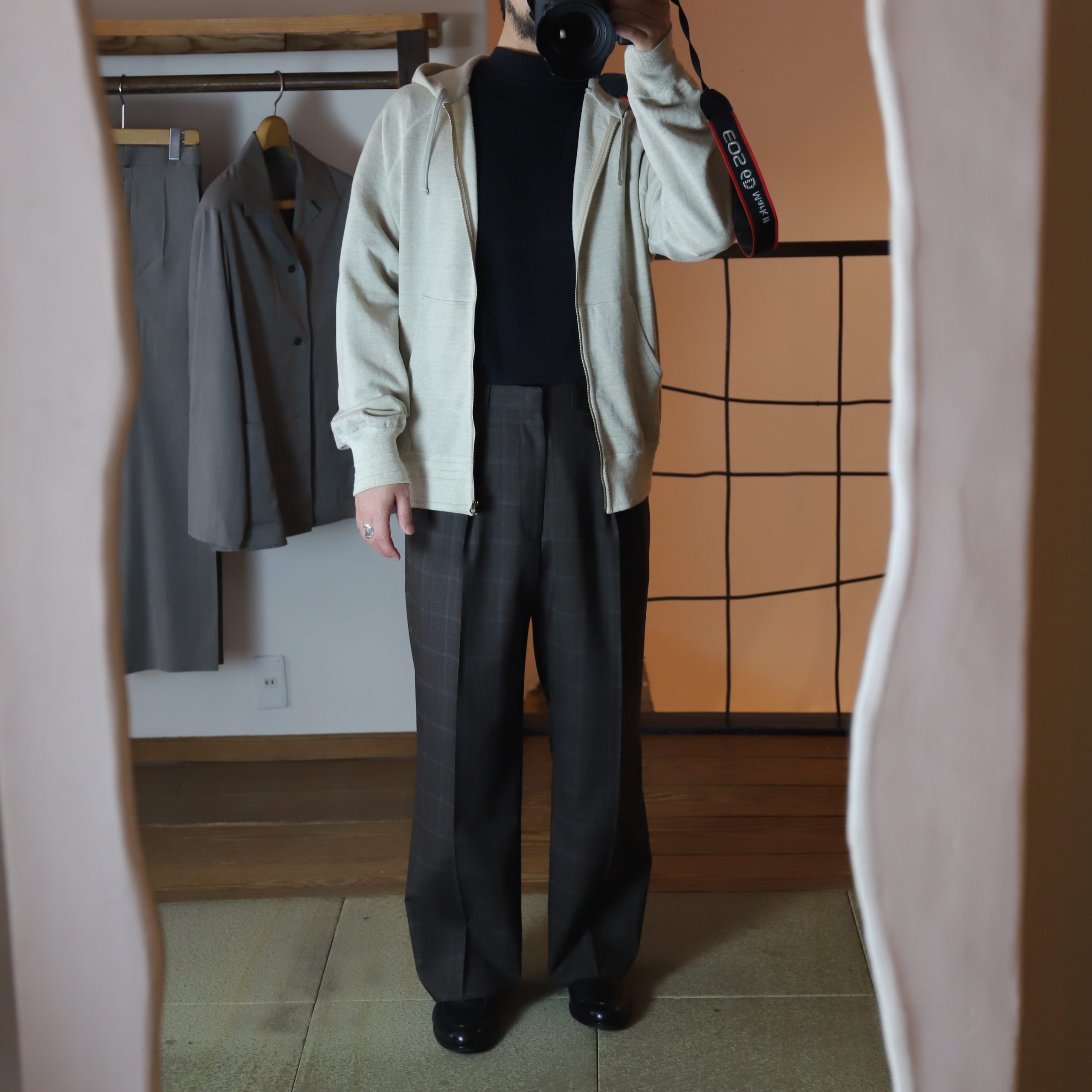 前回のジップパーカーでラフに合わせるくらいがちょうどいいです。