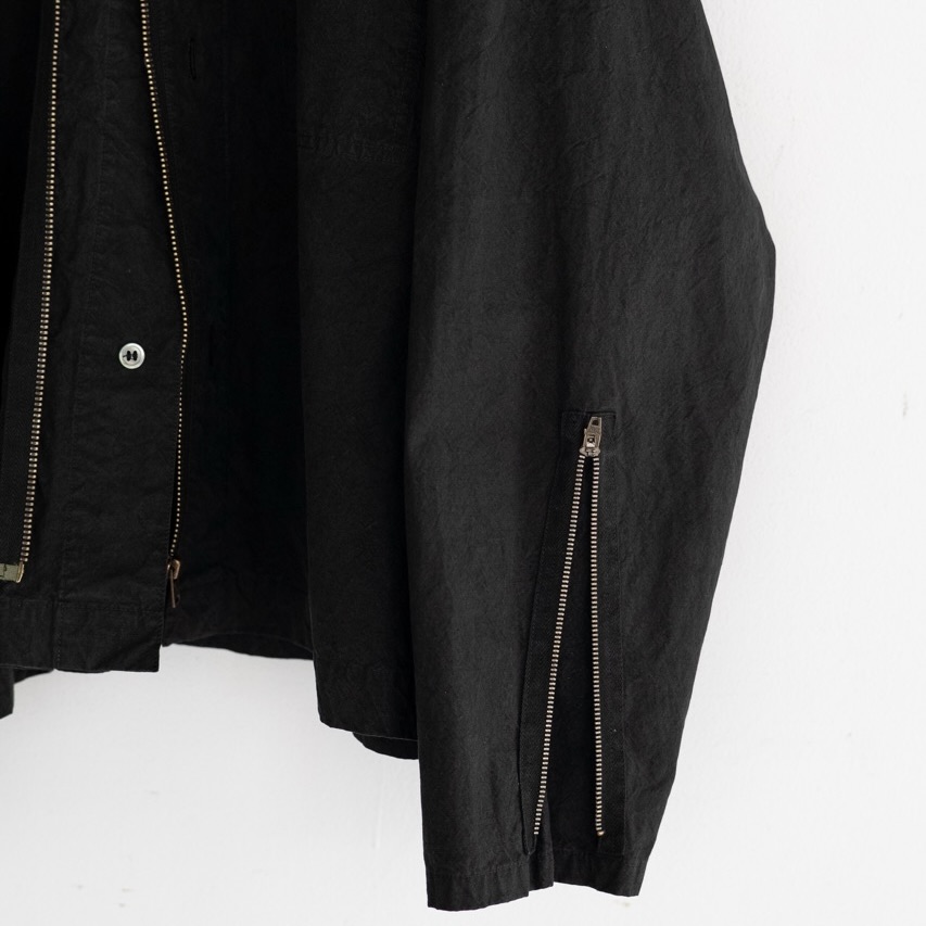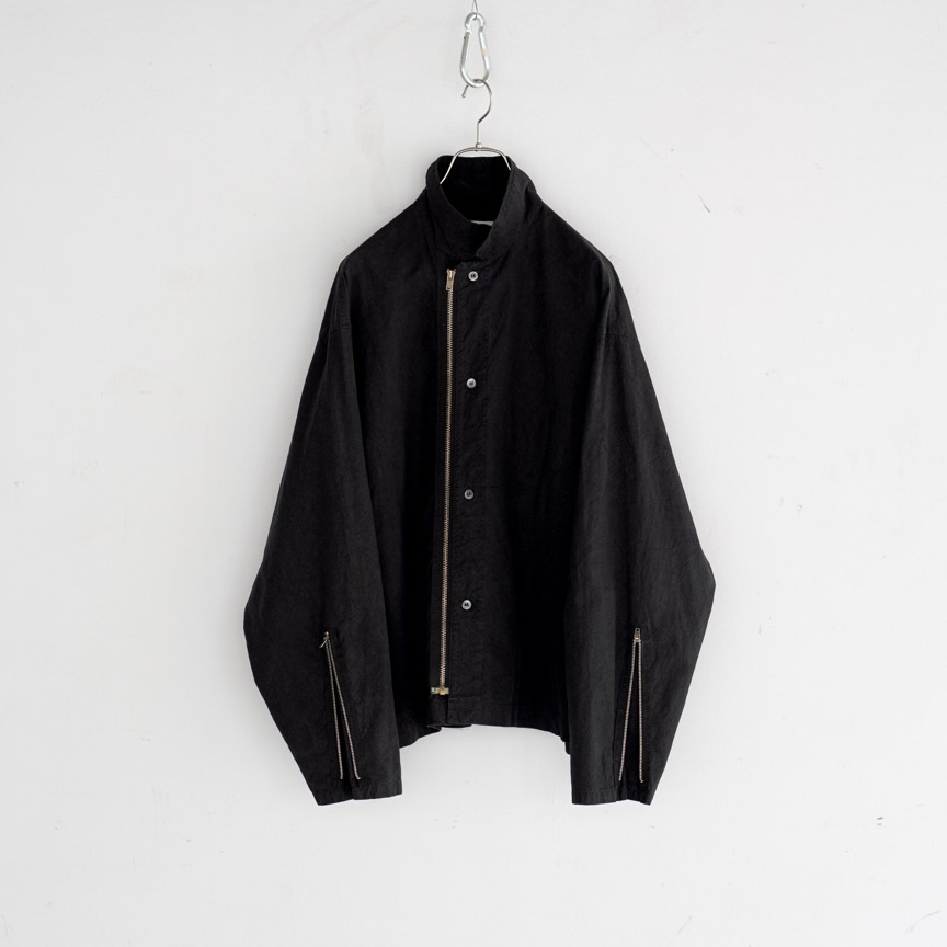 ボタンとジップのダブル使いがレイヤードに変化をもたらしてくれそうなショートブルゾン。