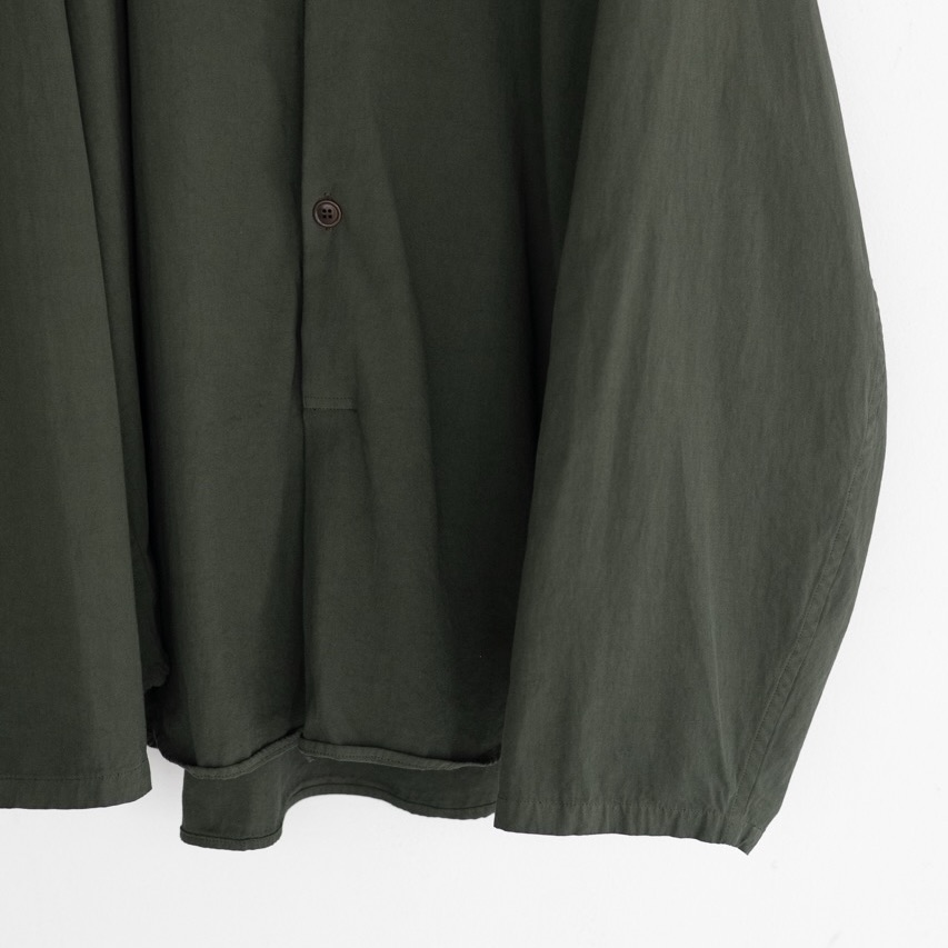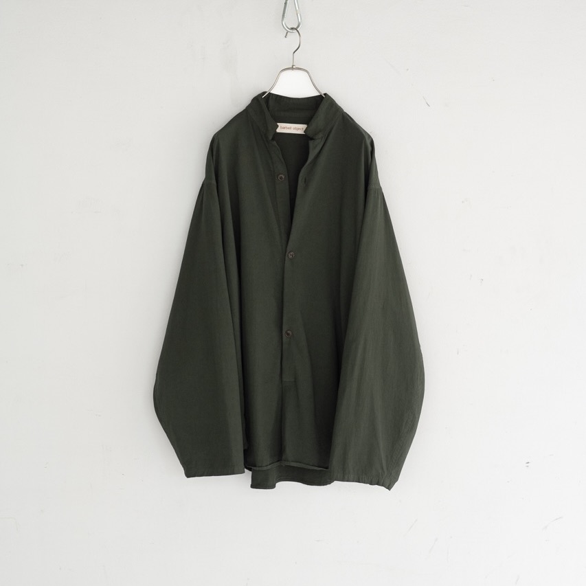たっぷりバランスのプルオーバーシャツ。袖は適当に捲って着るバランス。