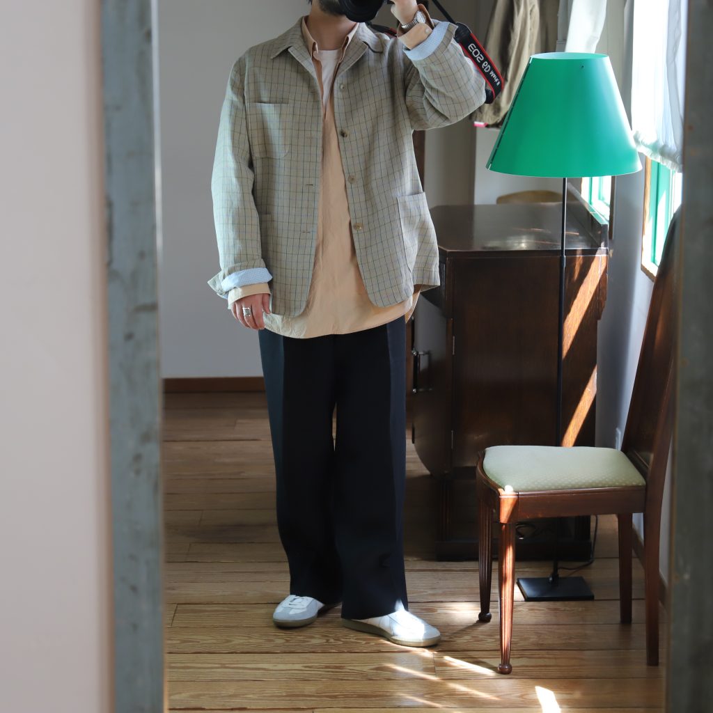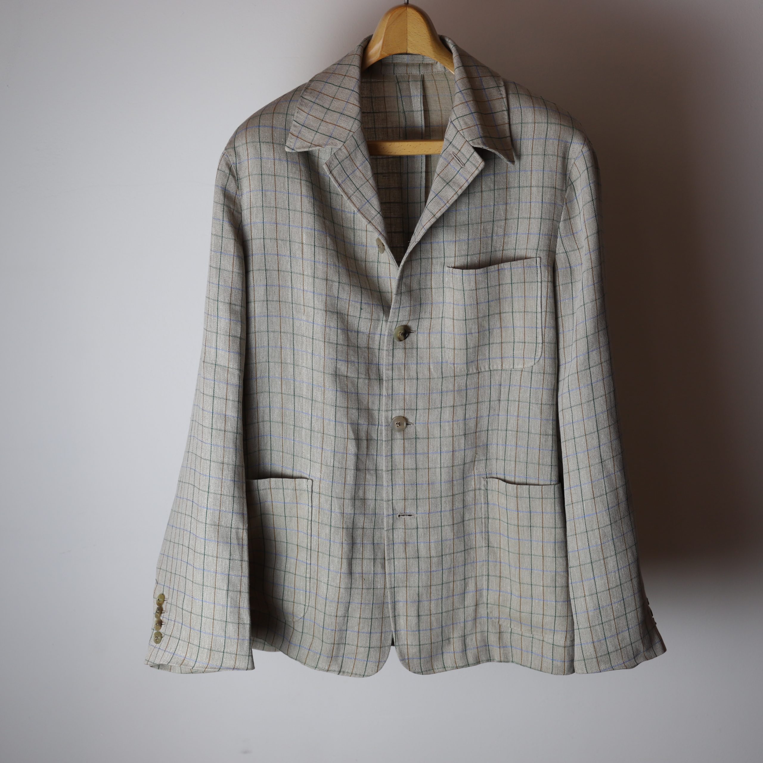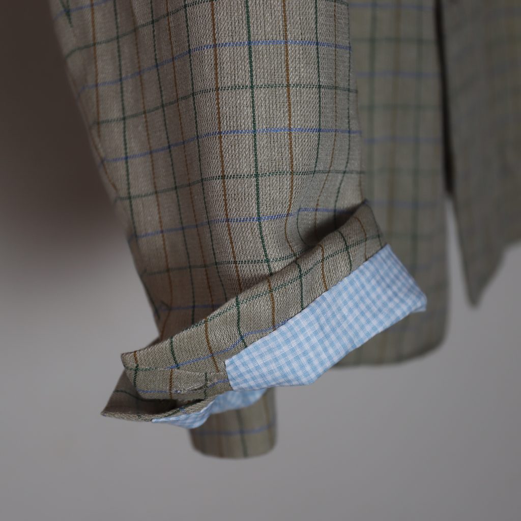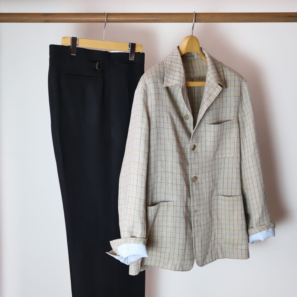 リネンの風合い、くすんだタッターソールの色合い、素晴らしい。