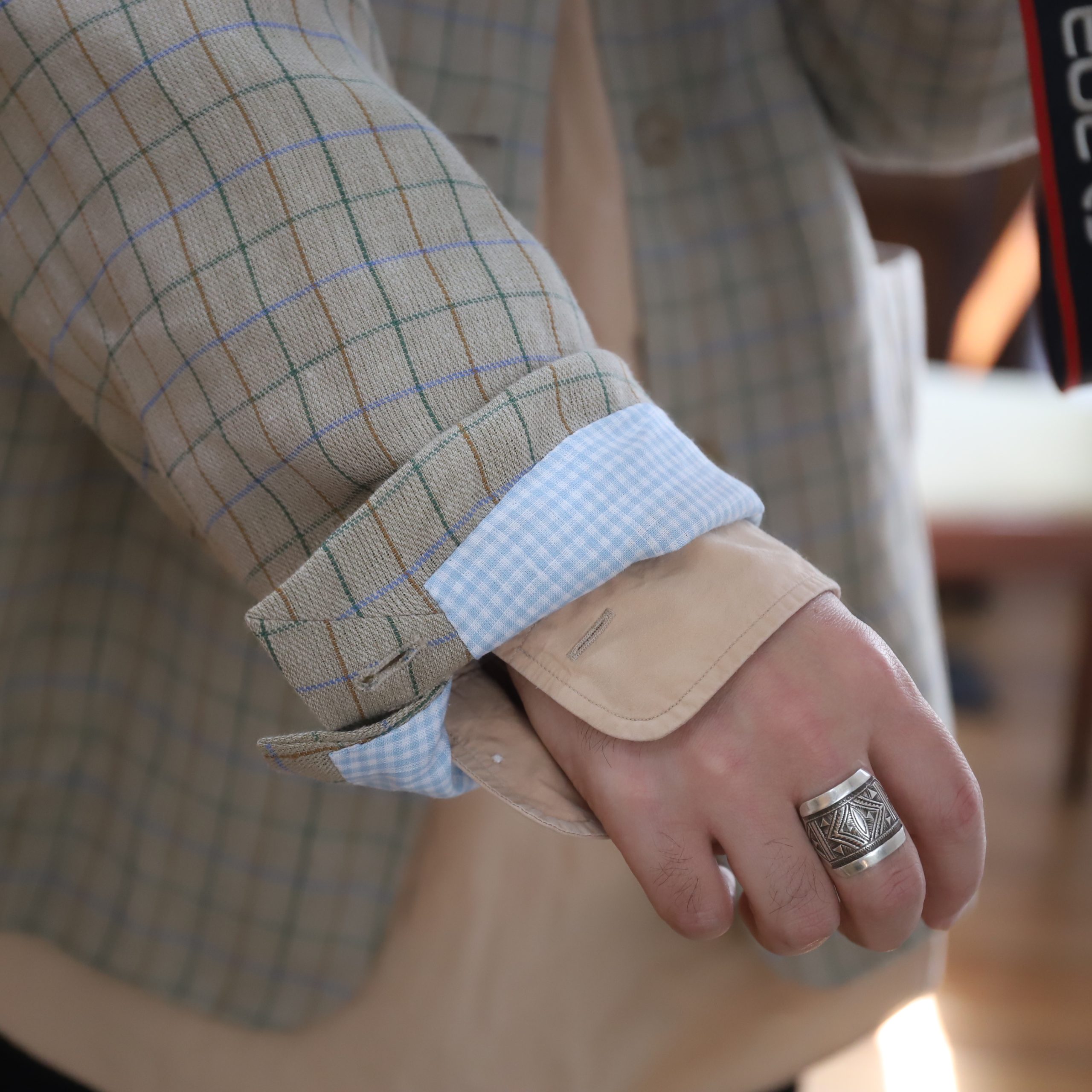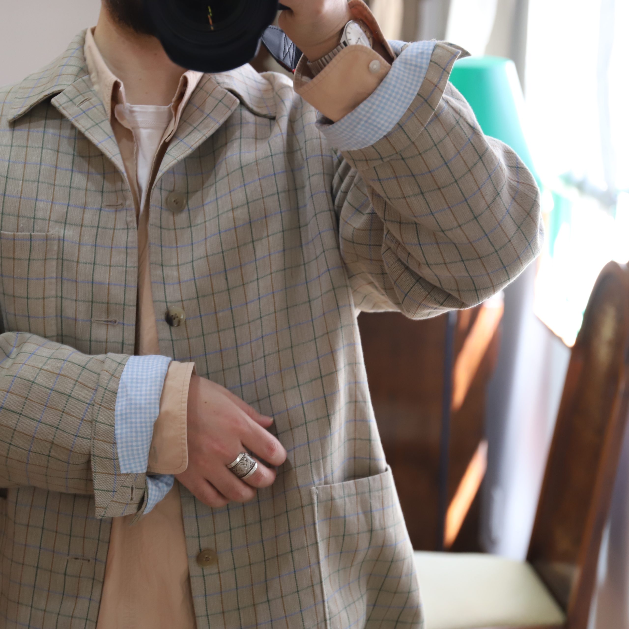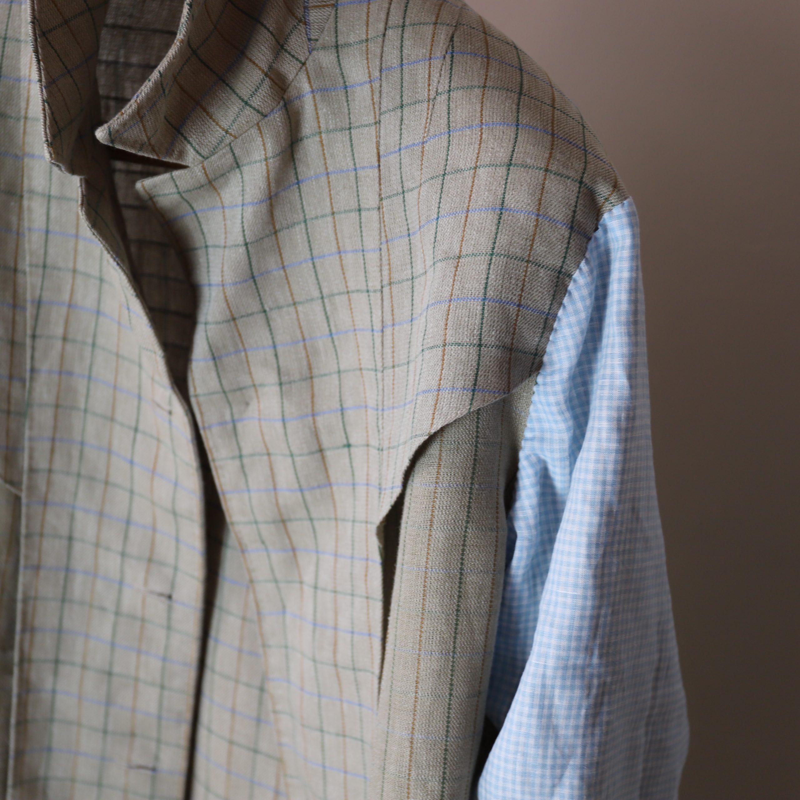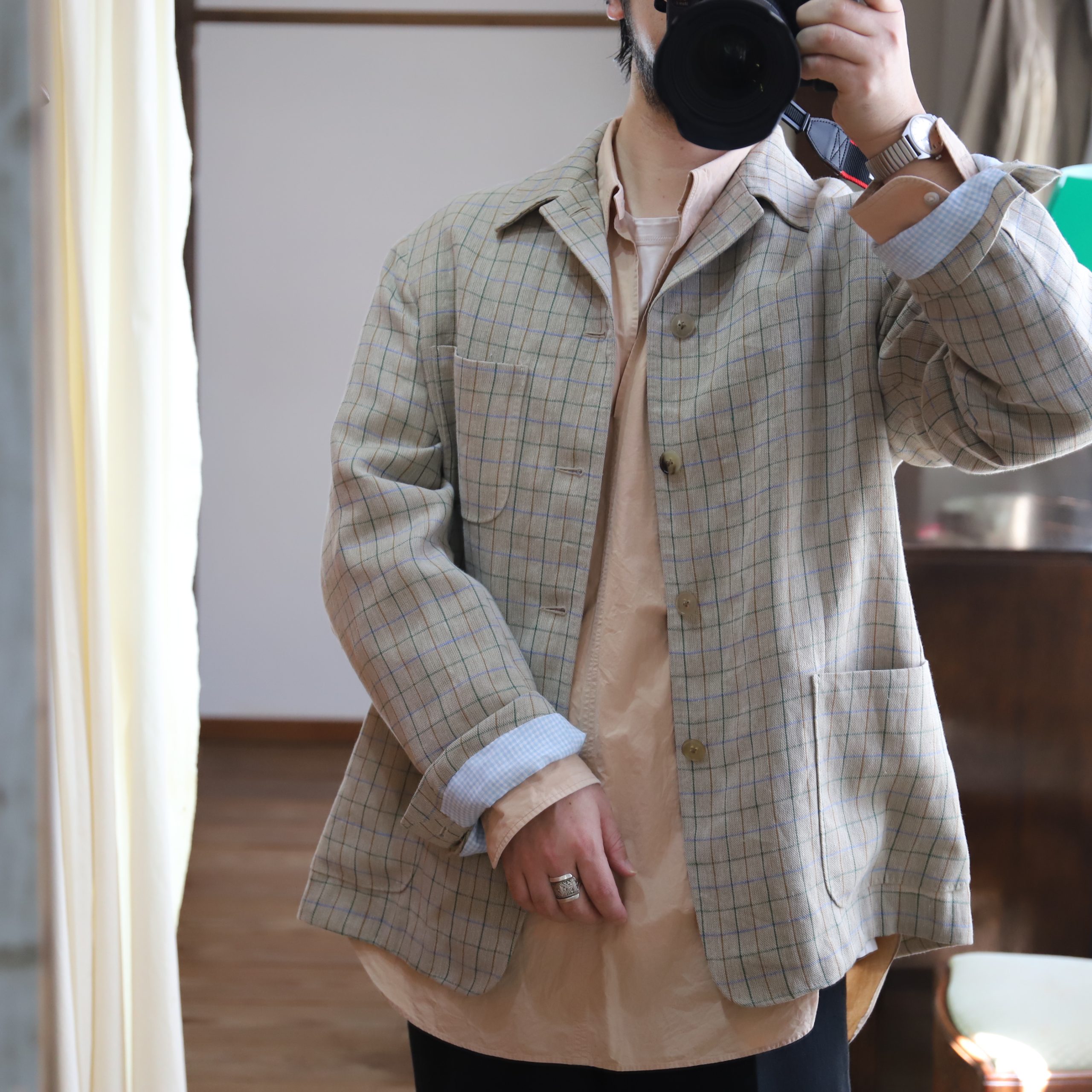 リネンの風合い、くすんだタッターソールの色合い、素晴らしい。
